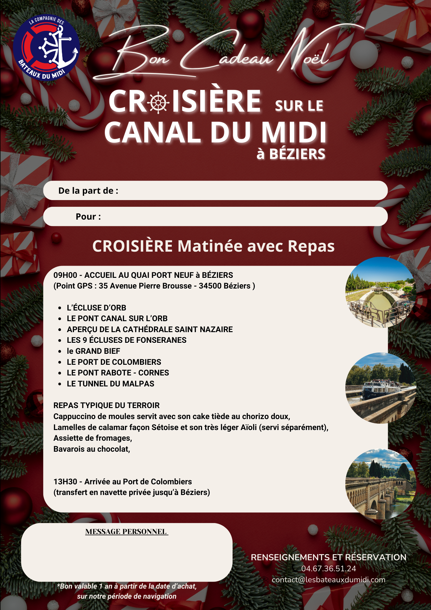 BON CADEAU NOEL Matinée avec repas à bord téléchargeable