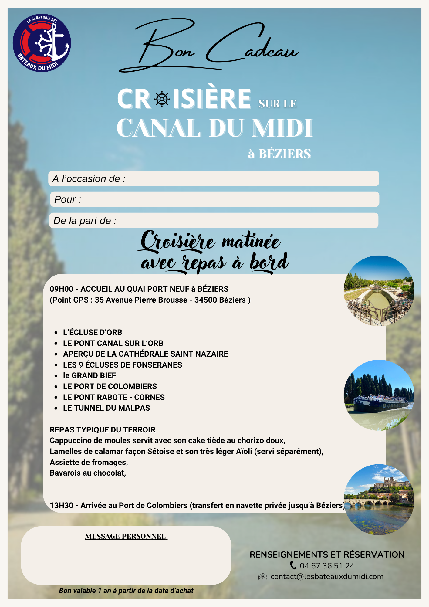 BON CADEAU Offre Black Friday CROISIERE MATINEE AVEC REPAS téléchargeable
